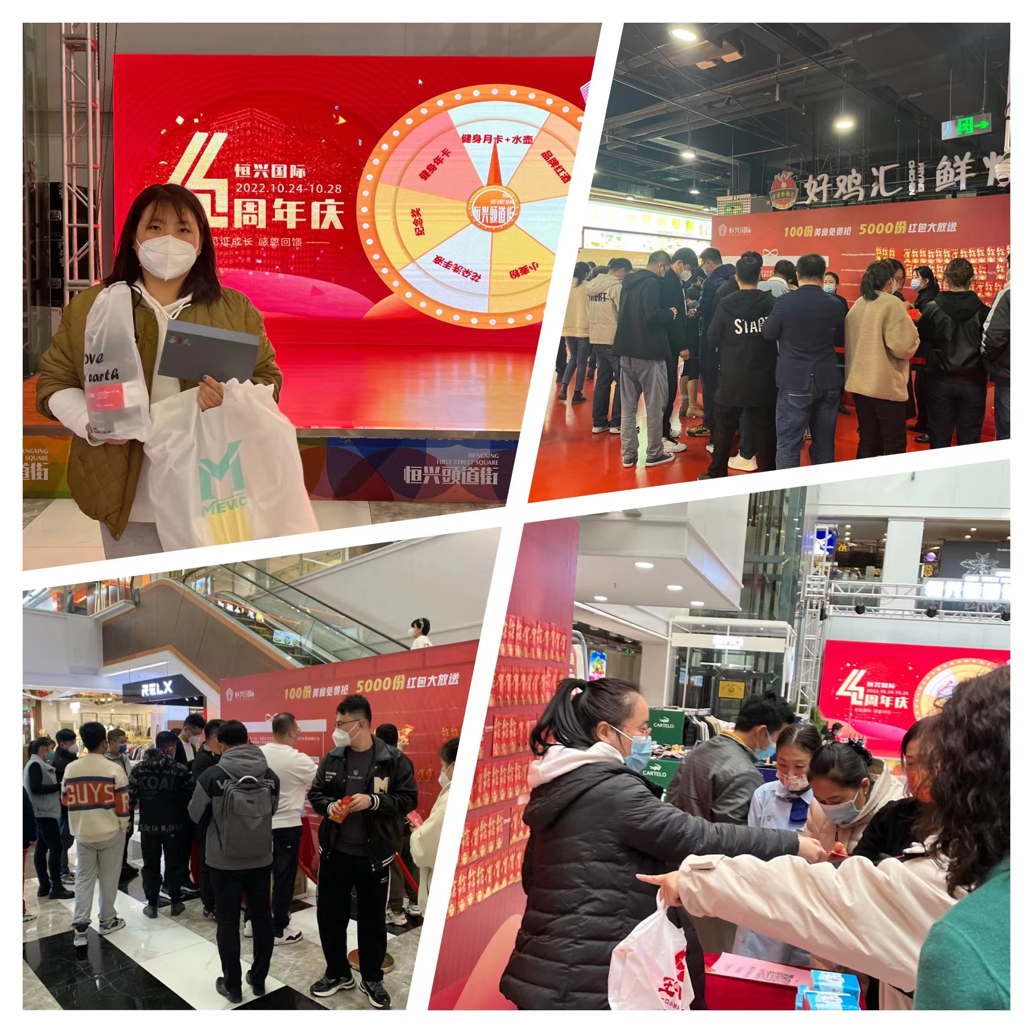 恒興頭道街感恩三重禮,同步呈現:恒興頭道街和恒興美食匯,同時設置了兩面美食紅包墻,隨機為顧客派送免單美食、餐飲券或紀念品;另推出“30元團50元餐飲券”活動,為顧客送上又一重驚喜;有美食更有好禮,恒興頭道街LED大屏幕上的幸運轉盤,每次轉動都為消費滿額的顧客抽中一份精美禮品!項目內上班族和周邊居民爭先恐后來“打卡”,活動期間,累計參與人次達8000余人。??