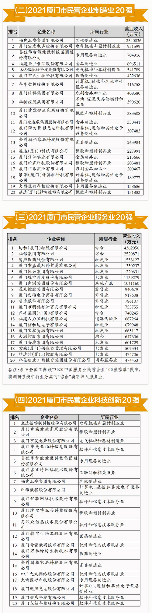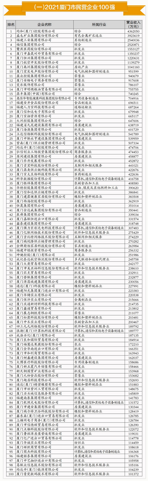 2021廈門市民營企業100強