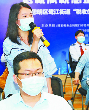 “拋磚引玉”的解讀之后,活動進入重頭戲——互動問答環節。除了現場宣講的三位宣講骨干外,來自思明區稅務局不同領域的業務骨干也來助陣,現場逐一解答企業問題。